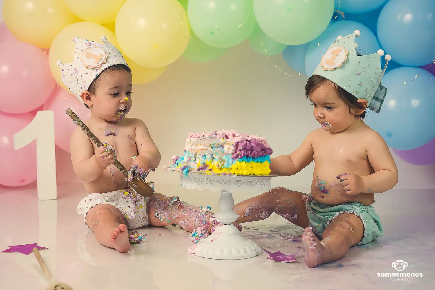 Si las sesiones smashcake son divertidas… cuando vienen mellizos la tarta llega al techo.